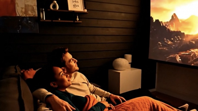 — кинотеатр: экран 150 дюймов и проектор с трансляцией фильмов с телефона;